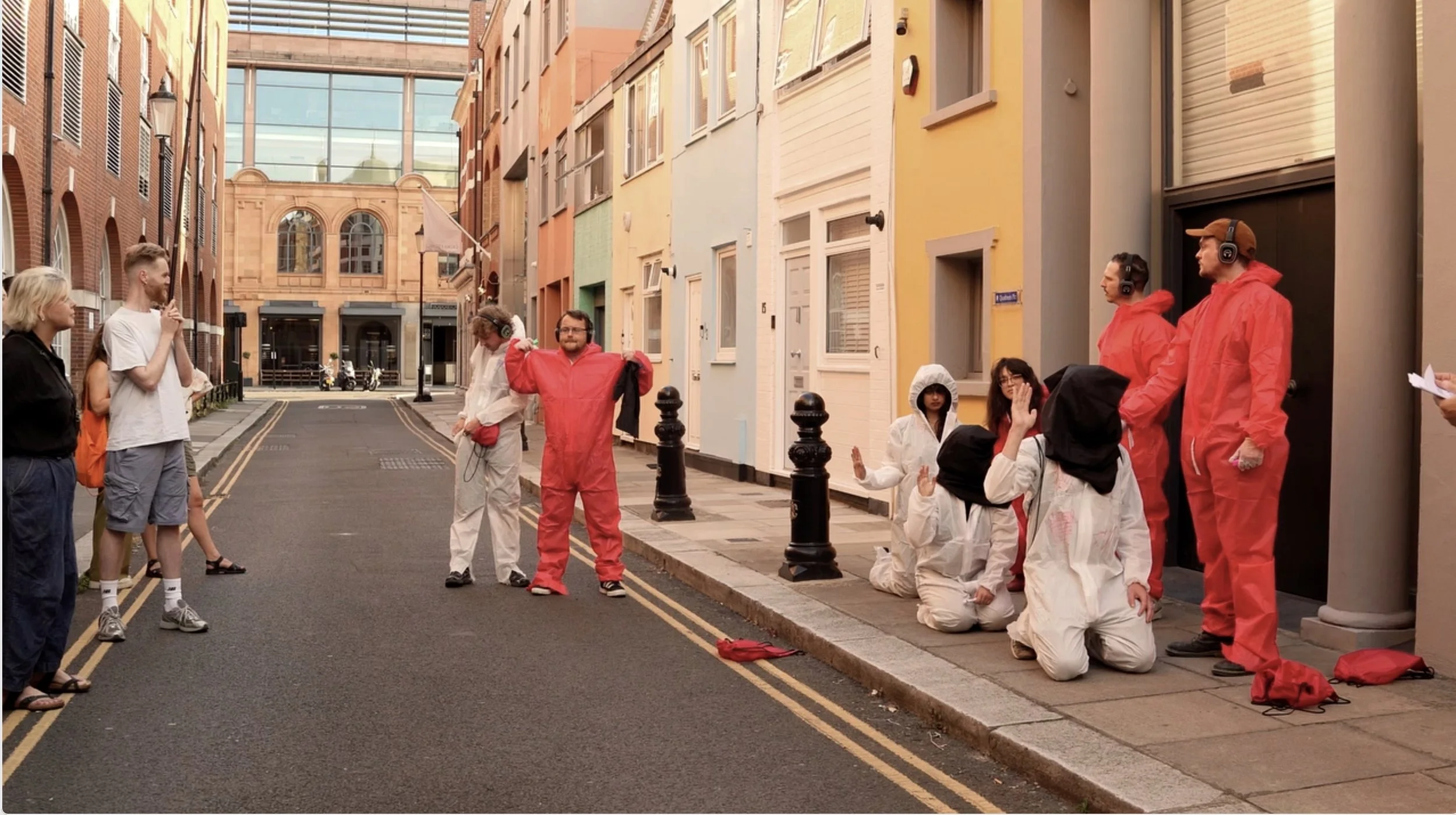 The experiment unfolds with a camera operator documenting the process — mirroring how atrocities committed against Palestinians are meticulously recorded yet continue unabated. It interrogates the role that visual broadcasting plays in this violence.