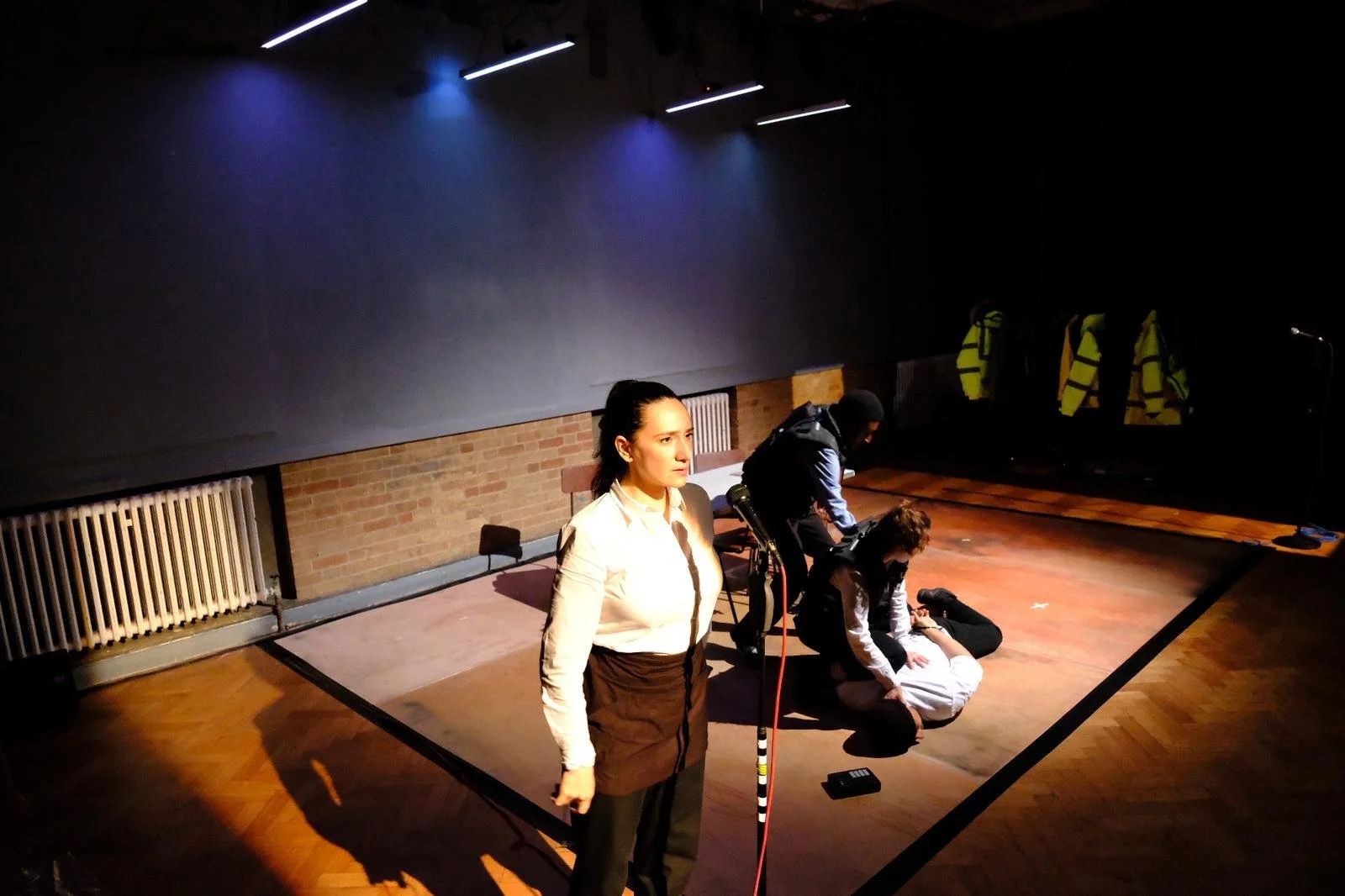 With thanks to Lara Sawalha, Olivia Vicol, Zac Downs, Kiays Khalil, Joshua Gadsby, Naomi Kuyck-Cohen, Sparks Theatrical Lighting Hires, BOLD theatre, Applecart Arts, the interviewees who wish to remain anonymous, Rhona Michie, Alessandra Sciarra, Ibtehal Hussain, Kieran O'Connor, Maya Osborne, Maz Saleem, Stop The War, Alexandra Mihalcea, CAAT, Theatre Delicatessen, David Ralf.