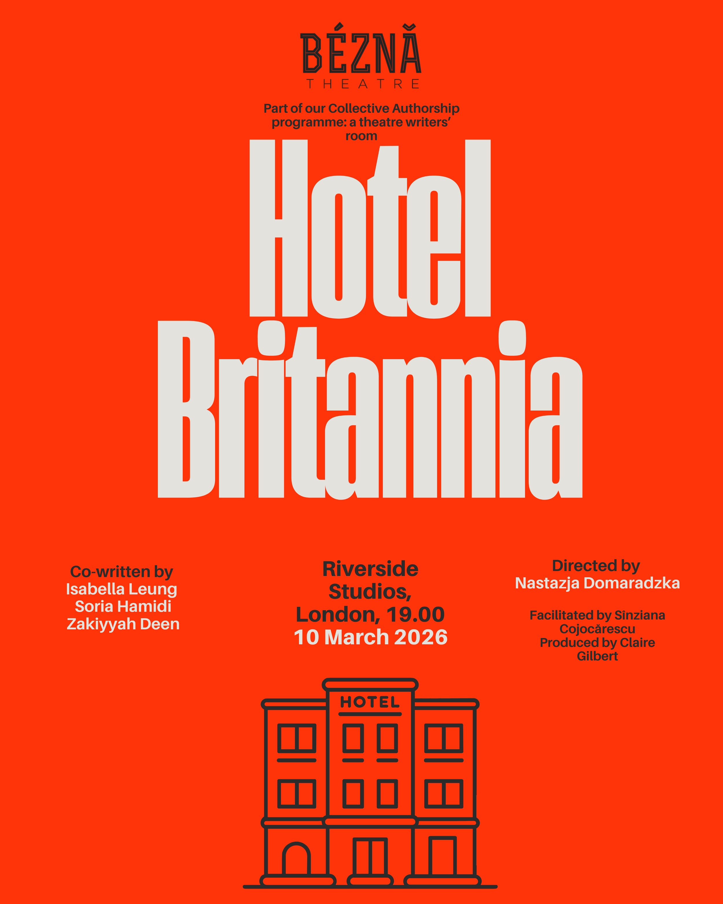 This collaborative programme was led by an experienced facilitator, where the three writers worked together in a writers' room environment, engaging in an intensive creative process. The final work, Hotel Britannia, will be presented in a professional rehearsed reading at the Riverside Studios on March 10th, at 19.00, directed by an industry-recognised theatre director.