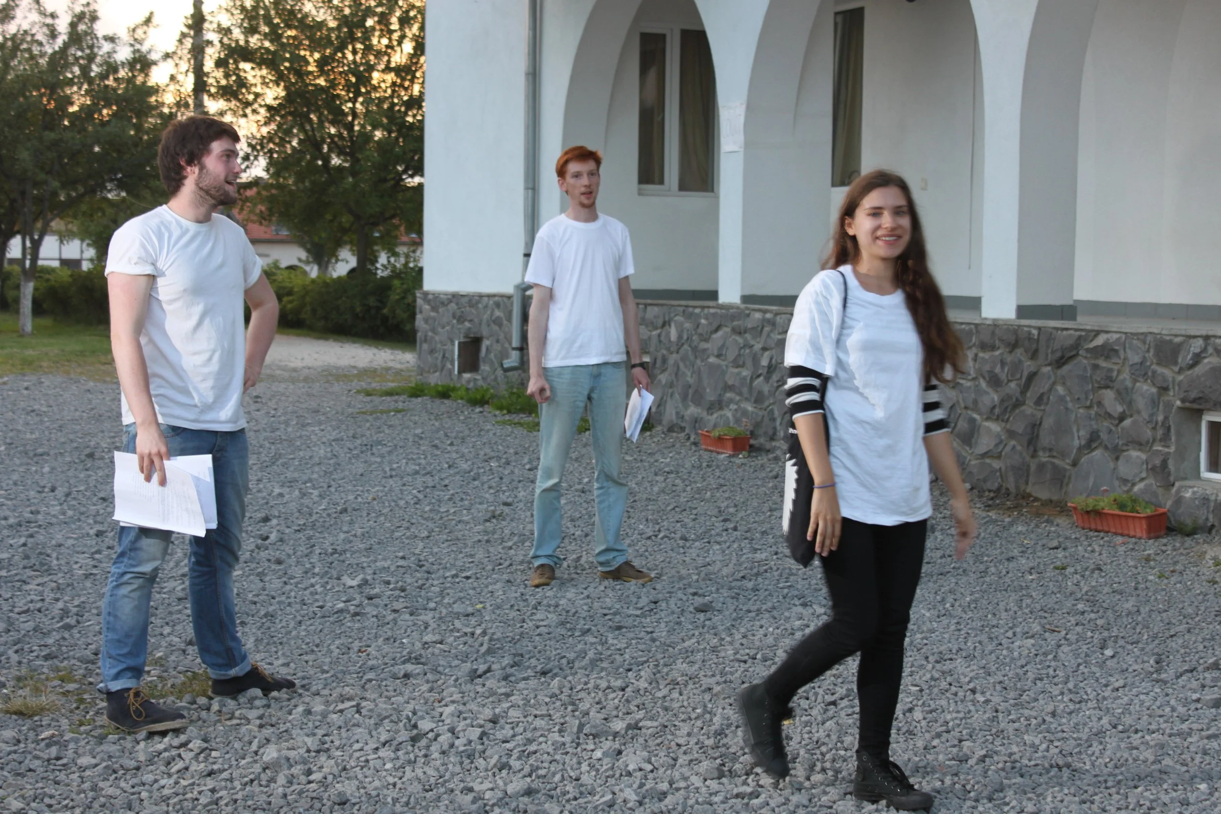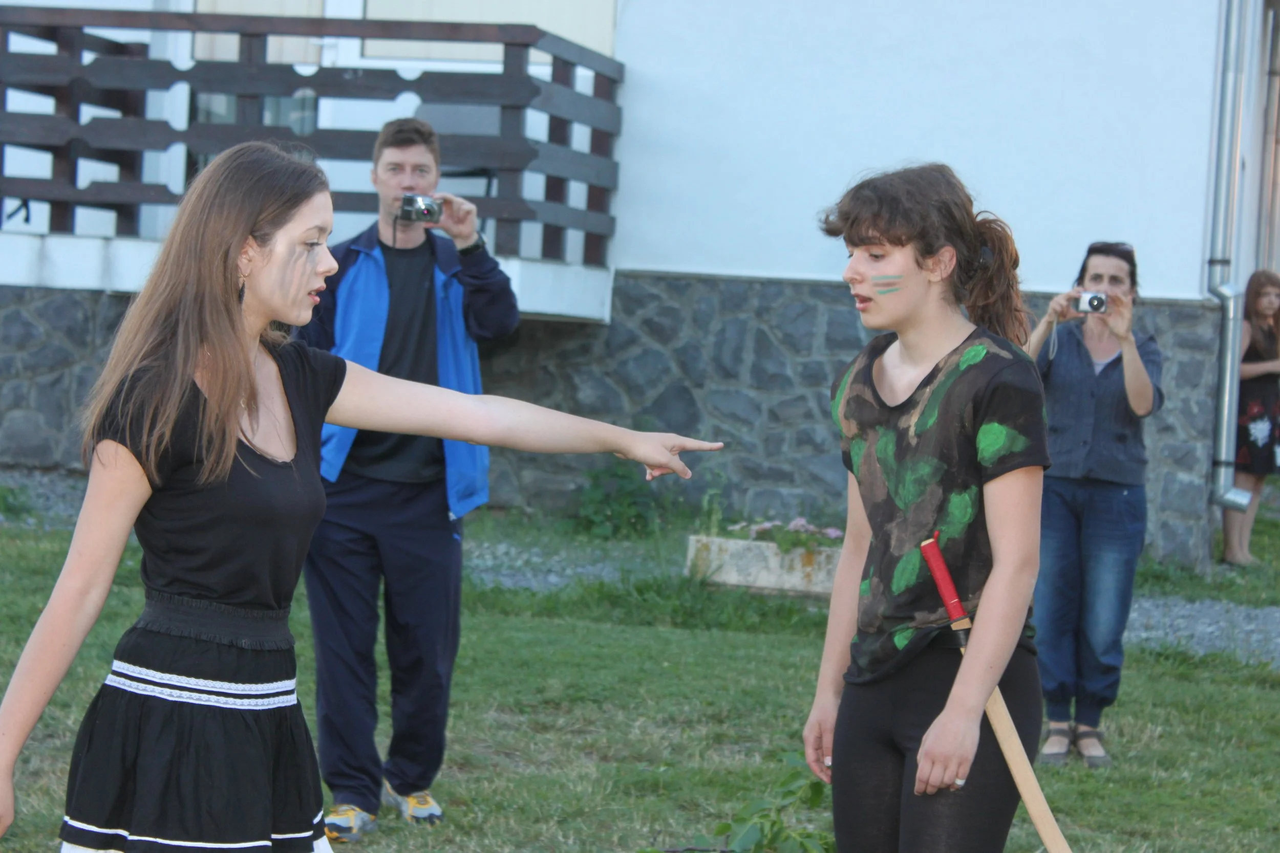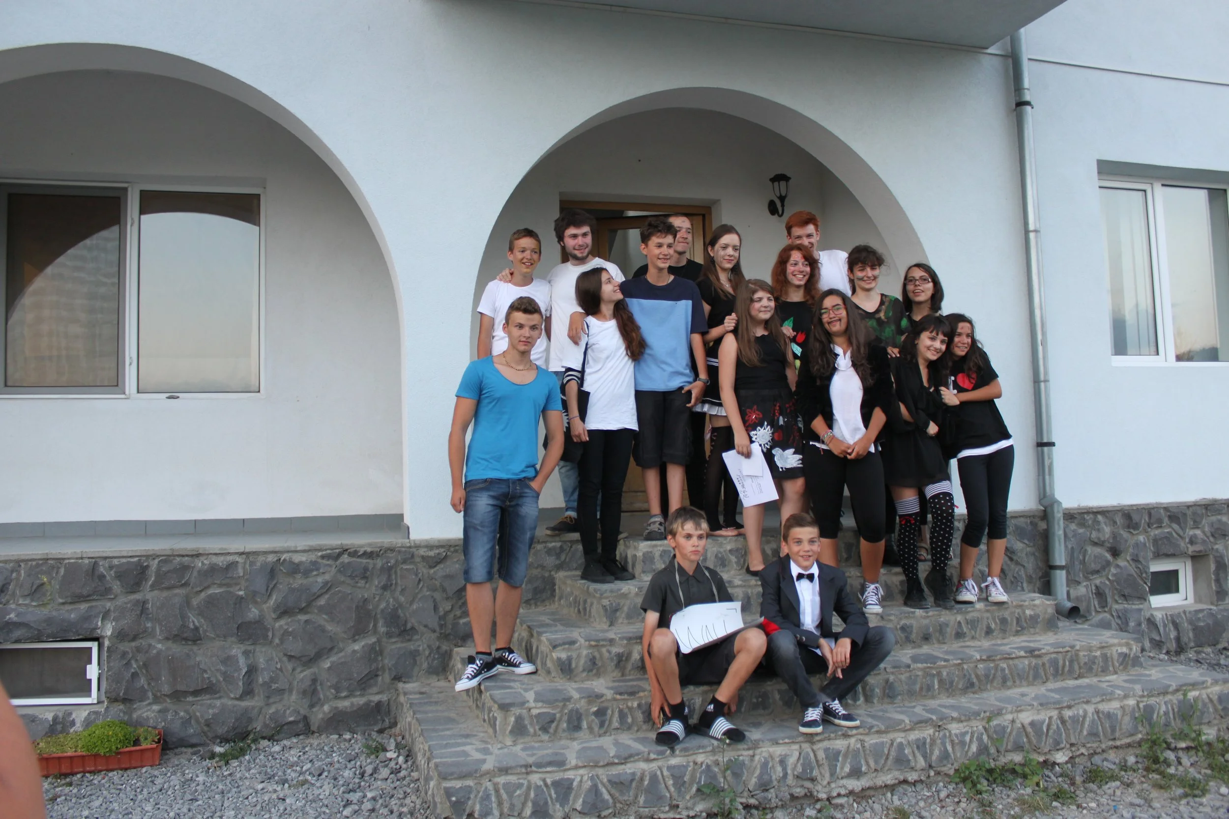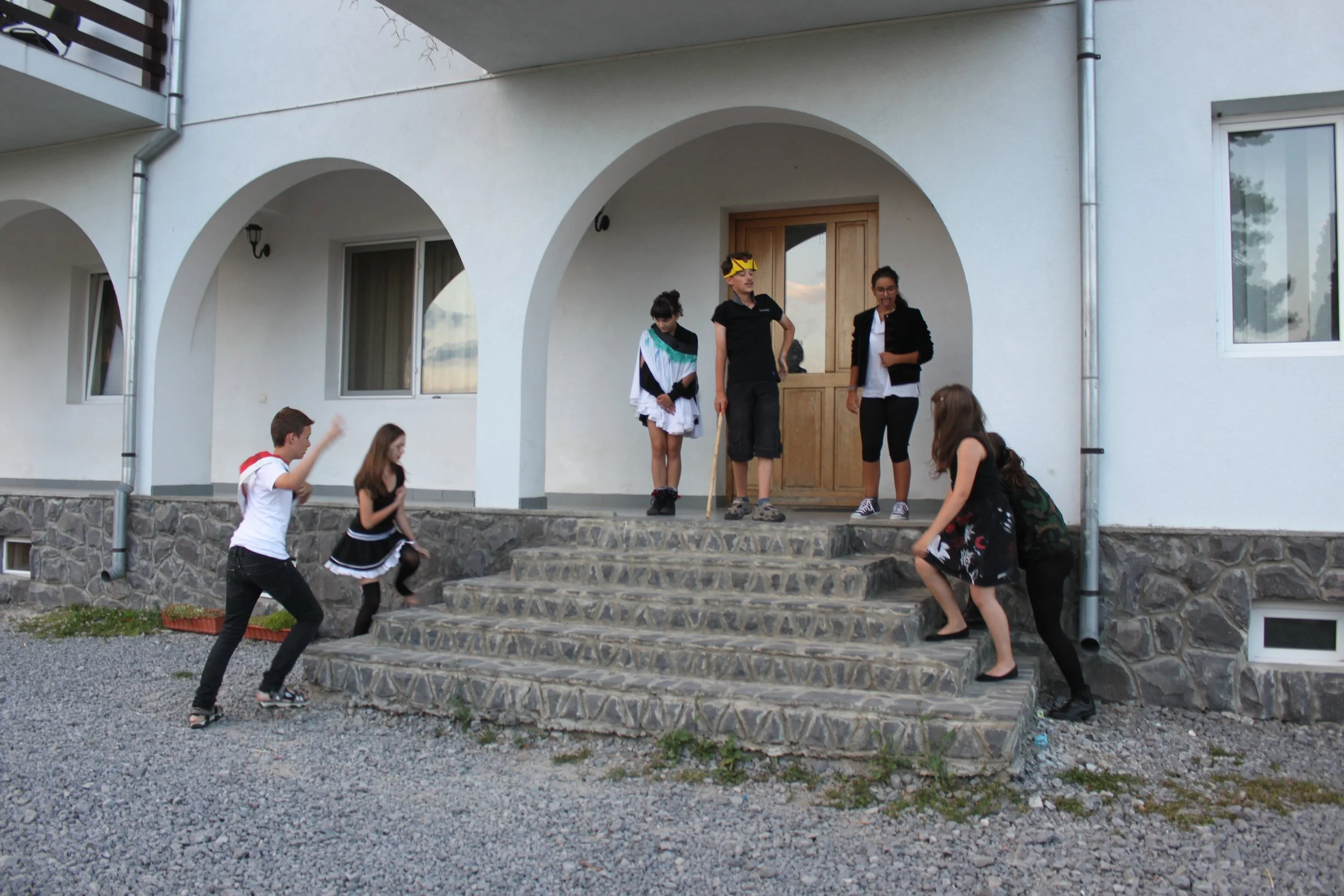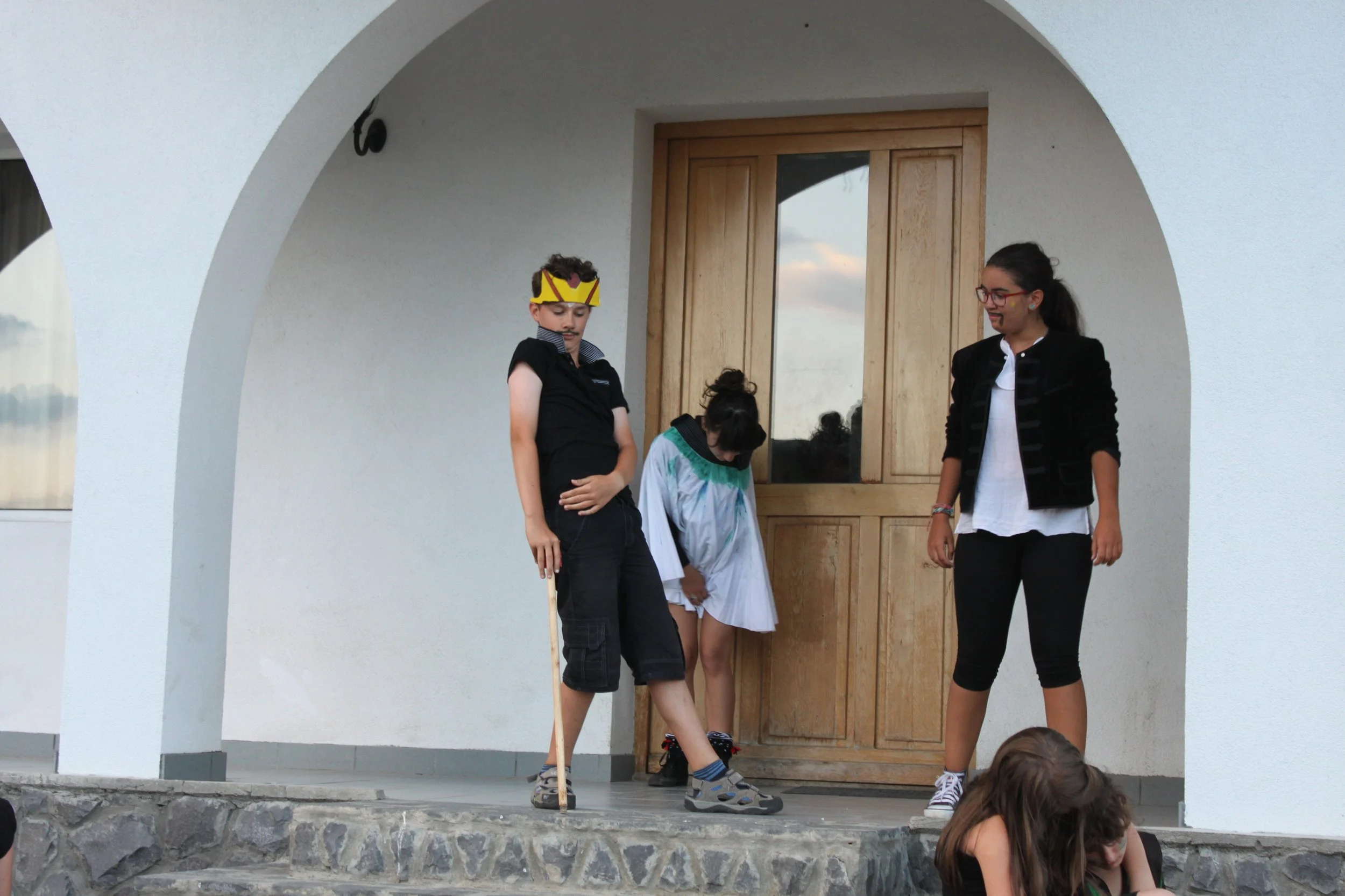 Our third theatre summer camp was in 2015 in Bran, Romania. Unlike the first two years which used abridged Shakespeare texts to explore important social and political ideas, Nico Vaccari and Fragen Theatre Company's Roland Reynolds coordinated a group of 11 - 17 year old students in devising, writing and performing their own production entitled ‘Why we do harm’.