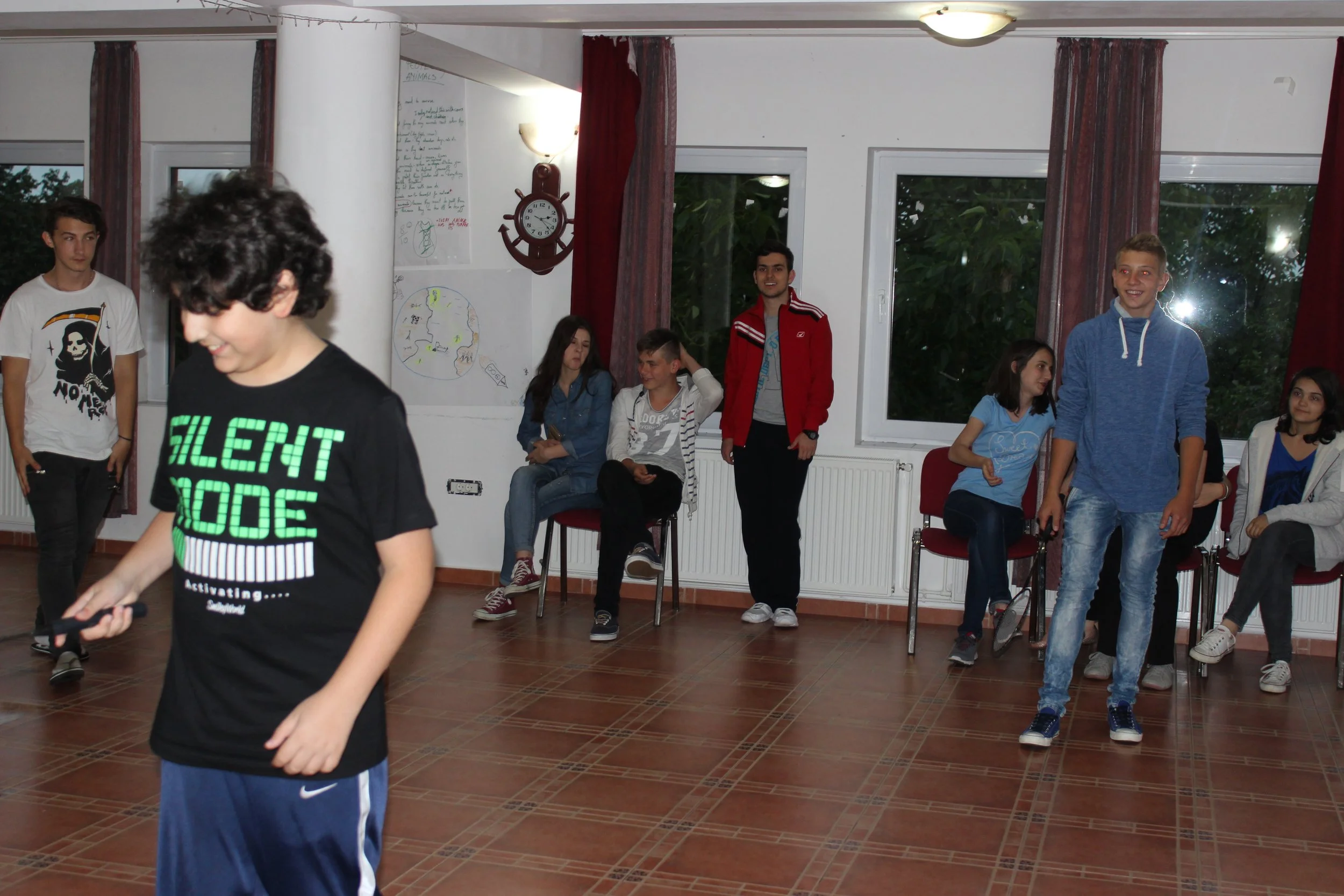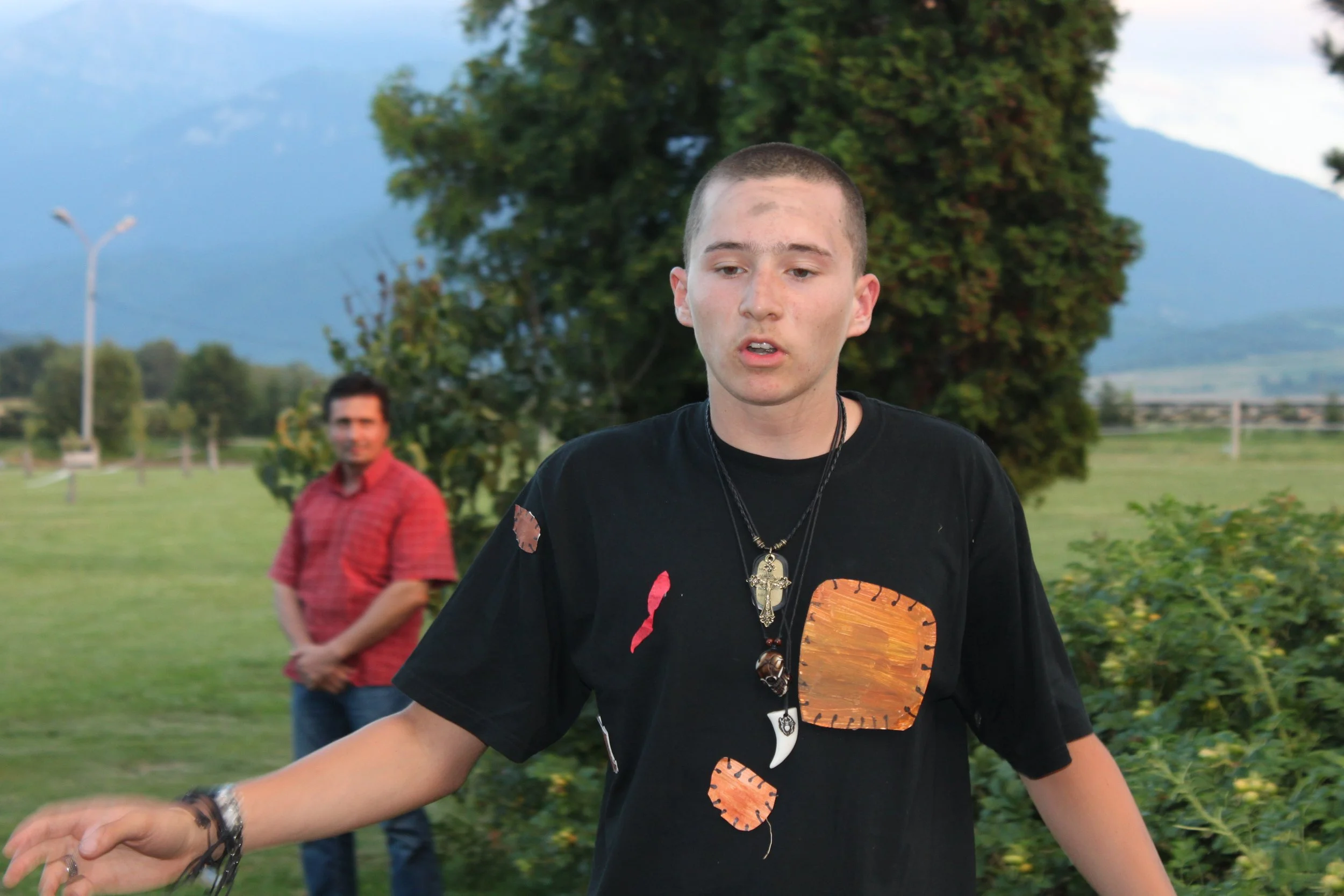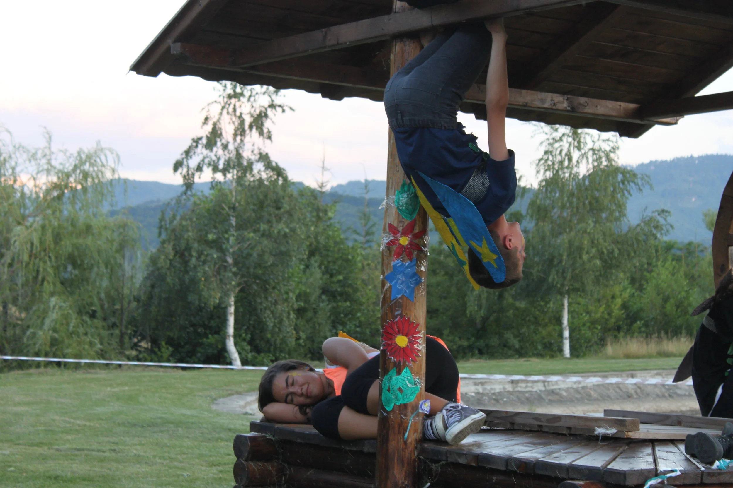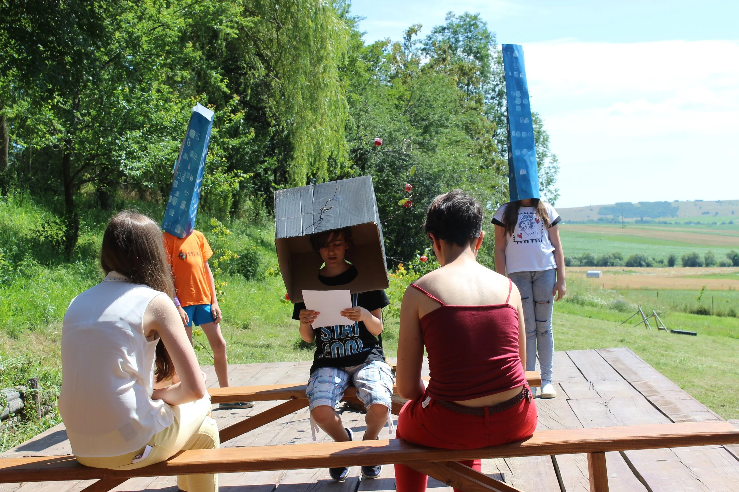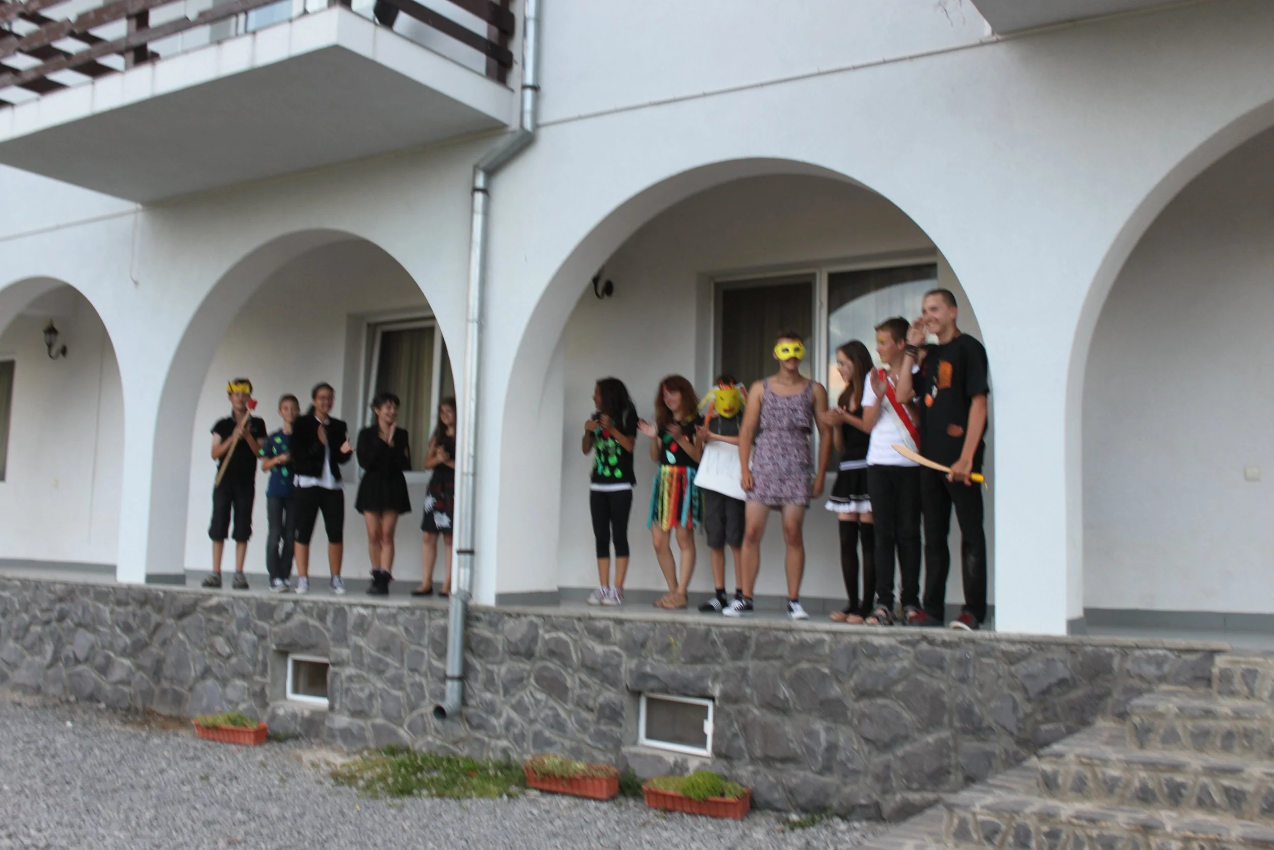 Our third theatre summer camp was in 2015 in Bran, Romania. Unlike the first two years which used abridged Shakespeare texts to explore important social and political ideas, Nico Vaccari and Fragen Theatre Company's Roland Reynolds coordinated a group of 11 - 17 year old students in devising, writing and performing their own production entitled ‘Why we do harm’.